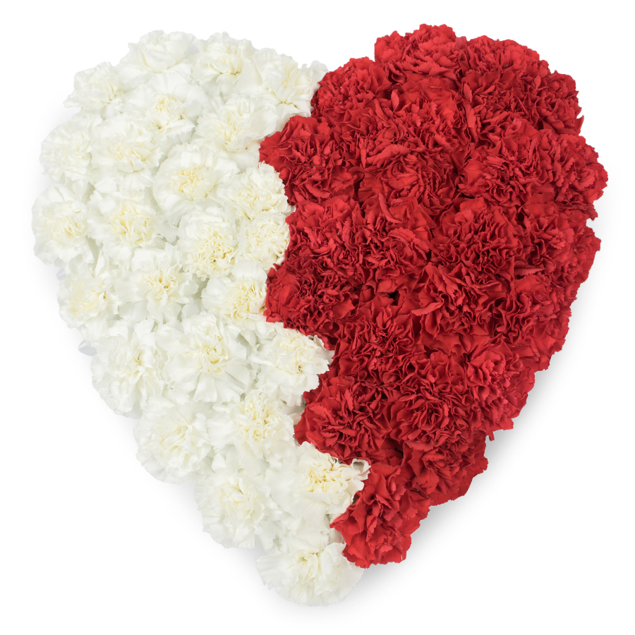 Express your heartfelt emotions with our beautiful heart-shaped carnation bouquet. This stunning arrangement combines white and red carnations to create a visually appealing display that embodies beauty and uniqueness.